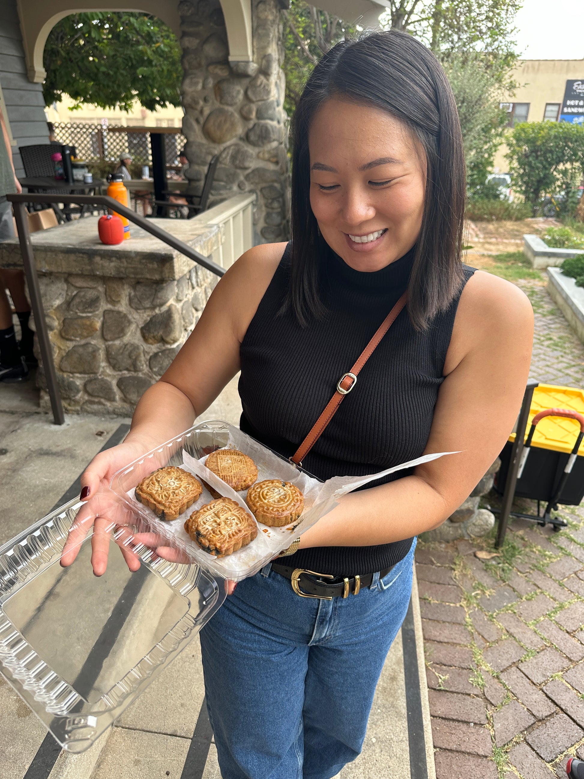 I had a blast meeting Hedy and Ashley of Rooted Fare, Jen (Baker’s Bench), and some of the other attendees of this mooncake making class! The class was set up in the beautiful outdoor garden behind the bakery, and Jen was a fantastic instructor who led us through the steps of making our own mooncakes. Hedy and Ashley were so kind and supportive, making sure we had everything we needed. I loved the fun and relaxed energy of the class, while participating in this time old tradition of celebrating the mid-autumn festival via mooncakes. The black sesame filling from Rooted Fare, along with some crushed almonds made these mooncakes so delicious- not too sweet and very flavorful. I highly recommend this class to anyone who loves mooncakes or wants to try something fun and new!